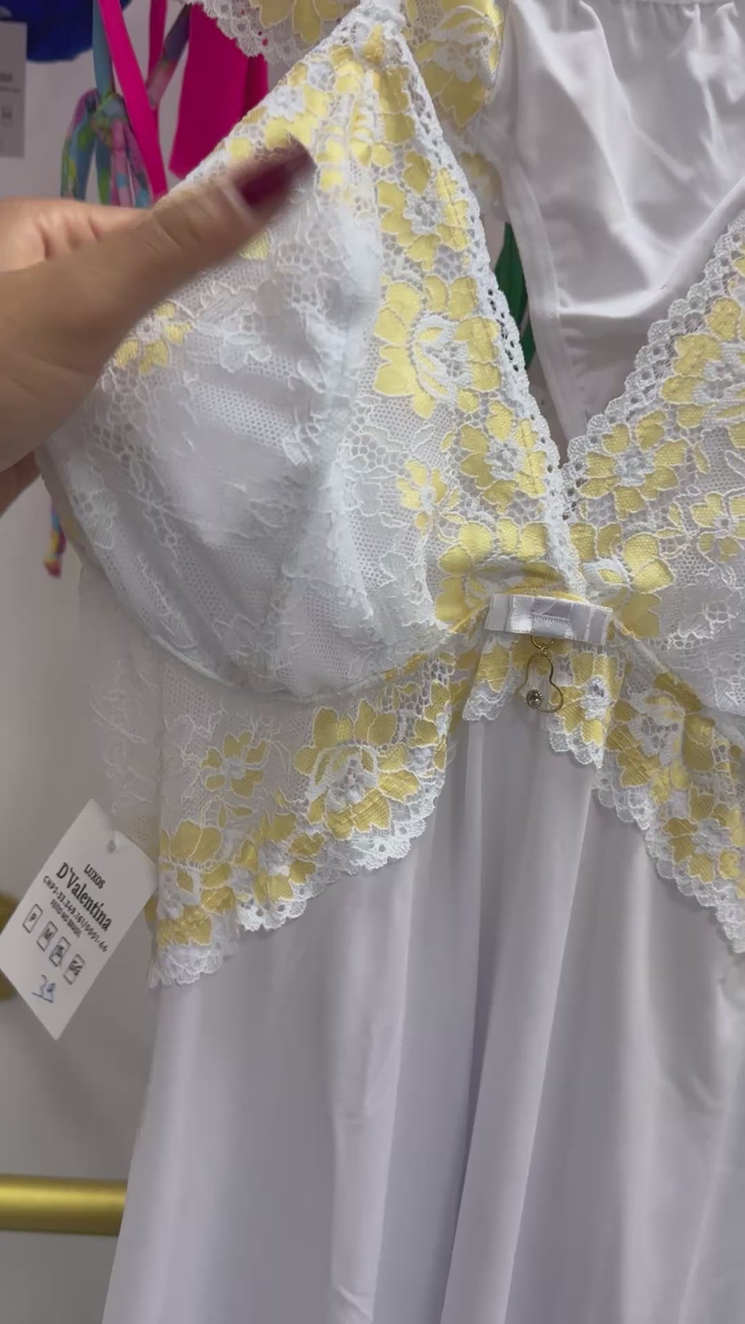 Camisola Branca com Detalhe de Renda Amarela e Calcinha/Cueca